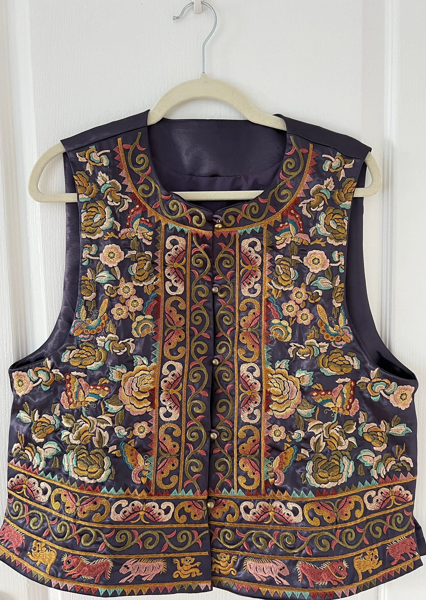 买衣服我想买些有中国特色的,我越来越喜欢新中式风格的衣服。这种风格融合了中国的传统服饰和现代剪裁。我觉得既优雅又特别。我挑了一件紫色的坎肩,一看到它我就觉得很好看。穿上身更喜欢了。这一件只需要175块钱 (35加币),我果断把它买了下来。等我回加拿大的时候,我也想穿着它出门。